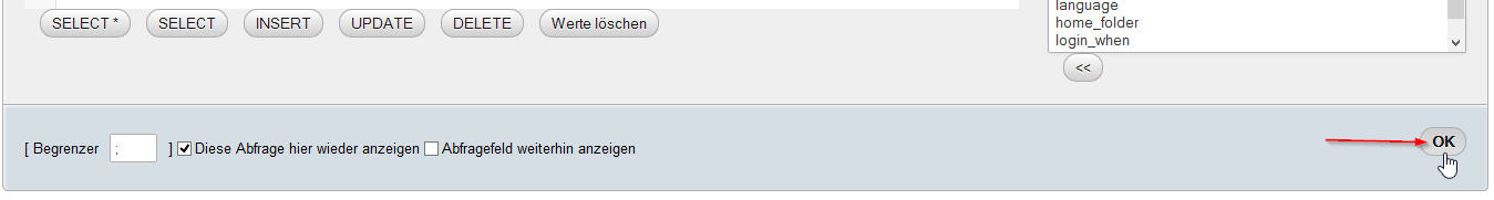 Sie sollten Zugriff auf die Datenbank z.B. mit phpMyAdmin haben!