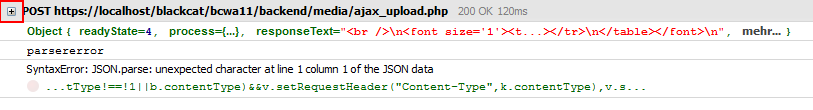 Ursache ist, daß eine über AJAX verarbeitete Anfrage eine Fehlermeldung zurückliefert, die nicht verarbeitet werden kann. Um dieser auf den Grund zu gehen, benötigt man die Firebug-Erweiterung (Firefox-Browser, auch verfügbar für Internet Explorer und weitere Browser).