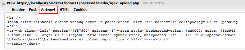 Auf dem Tab [Antwort] ist der Fehler zu sehen, die Ausgabe sieht jedes Mal anders aus
